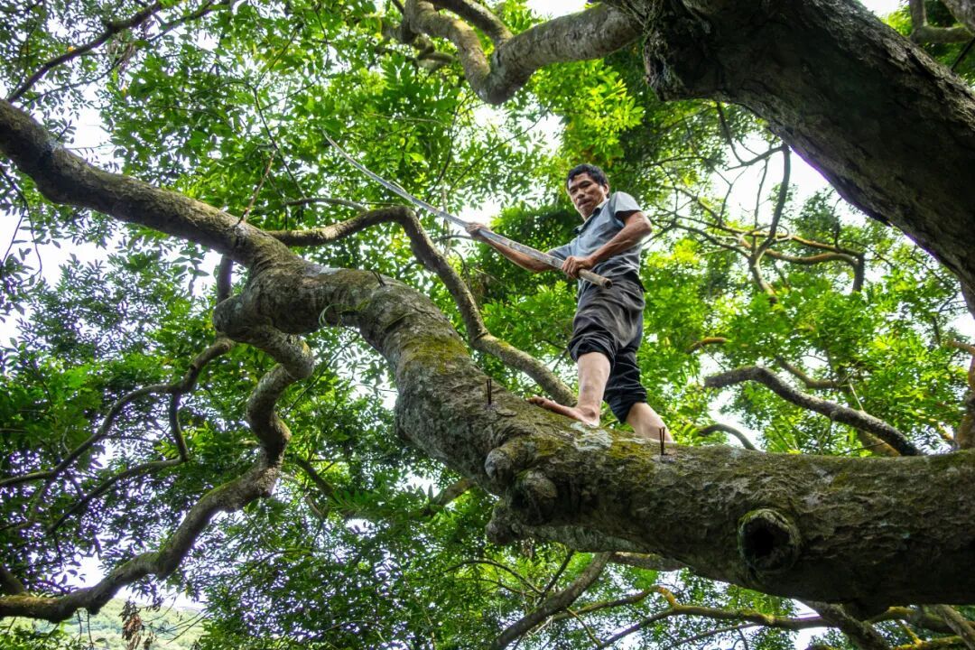 每年这时点石策略,村民们便会穿梭在榄林间,在乌榄树底下铺上纱网,手持长竹竿,爬上树干轻轻敲打树枝。成熟的乌榄如雨点般纷纷落下,随后被村民们逐一收集进竹筐,进行分拣处理。