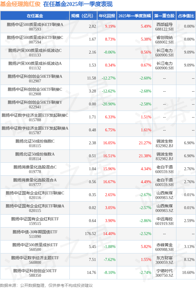本站消息恒汇证券,日前鹏扬中证500质量成长ETF基金公布一季报,2025年一季度最新规模5.45亿元,季度净值涨幅为5.82%。